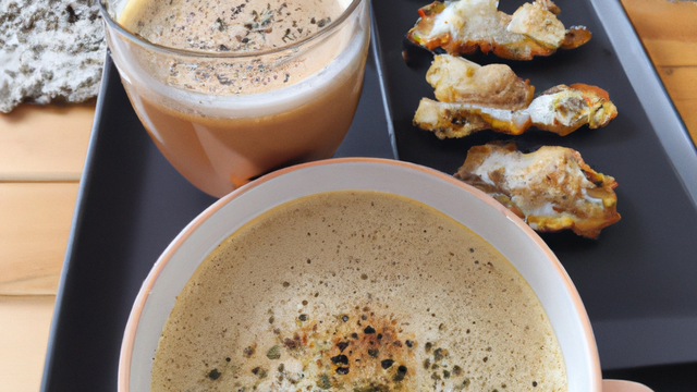 Petite crème Dubarry au fumet d'huitres et poisson émulsionnée à la crème et jaunes d'oeufs, dressée en tasse avec une huitre ébarbée et sommités de chou
