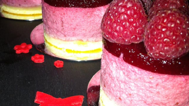 Passez un couteau lisse sur le tour de l'entremets pour faciliter le démoulage avant de décorer de fruits rouges aux choix.