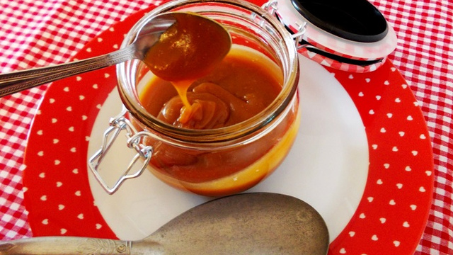 Lorsque le sucre est fondu et a une belle couleur ambrée, et que la crème liquide entière est bien chaude et a connu ses premières ébullitions, l'ajouter en plusieurs fois au caramel hors du feu. Attention aux projections. Remuer pour bien l'intégrer au caramel. Si le caramel se solidifie et forme une boule, c'est que la crème n'était pas assez chaude. Il faut alors tout recommencer : Toujours hors du feu, ajouter le beurre salé coupé en petits morceaux et mélanger jusqu'à sa fonte complète. Puis remettre la casserole sur feu doux et faire monter le caramel à 103°C (premiers bouillons). Enfin, hors du feu, ajouter la fleur de sel et mélanger rapidement. Verser le caramel dans le pot à confiture et laisser refroidir.