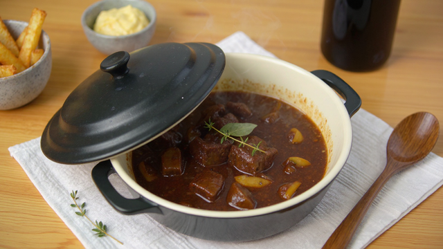 La carbonnade de bœuf, c’est le plat mijoté par excellence qui réchauffe les dimanches d'hiver. On l'aime pour sa sauce riche et onctueuse où se mêlent la bière, les oignons fondants et cette touche sucrée-salée irrésistible apportée par la cassonade et le pain d'épices. Dans cette recette authentique du Nord, la viande prend le temps de confire doucement jusqu'à devenir incroyablement tendre. C’est un plat généreux, convivial et profondément réconfortant !