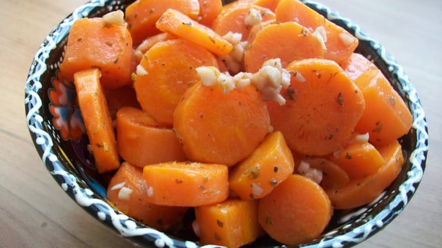 Chauffer l'huile dans une poêle, ajouter les carottes et cuire environ 8 à 10 min à feu moyen et en remuant souvent.