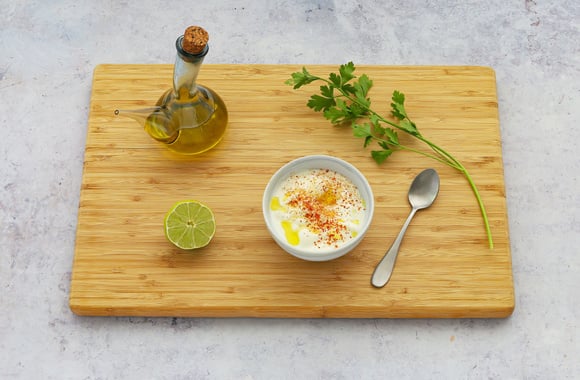 Mettez le yaourt dans un bol, salez, poivrez, ajoutez le piment d'Espelette. Ajoutez l'huile d'olive, le jus de citron fraîchement pressé et le persil plat ciselé. Mélangez le tout.