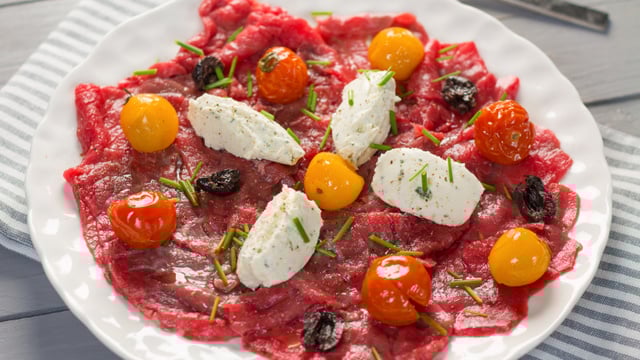 Ce carpcaccio de boeuf est parfait pour une entrée toute en fraîcheur, relevé par la force onctueuse du Tartare Ail et Fines Herbes.