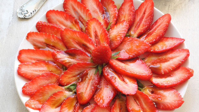 Lavez vos fraises, séchez-les puis coupez-les en tranches très fines.