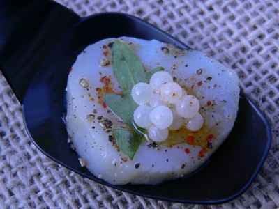Un amuse bouche à base de Saint-Jacques et caviar d'escargot ! Un must...