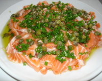 Vous cherchez une idée de recette à base de saumon pour une entrée ou bien un apéritif ? Ce carpaccio de saumon est un jeu d'enfant à faire et en plus il est succulent. Pour donner du goût au carpaccio de saumon, vous allez proposer un accompagnement à base de tomates. Une fois vos lamelles de saumon posées sur les dés de tomates, vous allez arroser le tout avec de l'huile d'olive, du jus de citron, des rondelles d'oignon vert mais aussi du basilic ciselé. Enfin, pour avoir une note épicée, à la dernière minute vous allez saupoudrez le carpaccio de saumon avec une pincée de piment d'Espelette (ou de Cayenne) et quelques câpres. Dès la première bouchée de ce carpaccio de saumon, vous allez l'adorer !