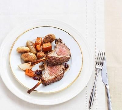 Retirez-les légumes de l'eau, égouttez-les, séchez-les dans un torchon. Faîtes fondre 1 cuil. à soupe de beurre et 1 cuil. à soupe d'huile d'olives dans une poêle, ajoutez les légumes, laissez-les dorer de tous les côtés en les retournant régulièrement, en fin de cuisson, ajoutez les cranberries pour qu'elles s'imbibent de jus. Retirez le carré d'agneau du four et servez-le accompagné des petits légumes dorés.
