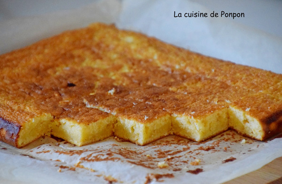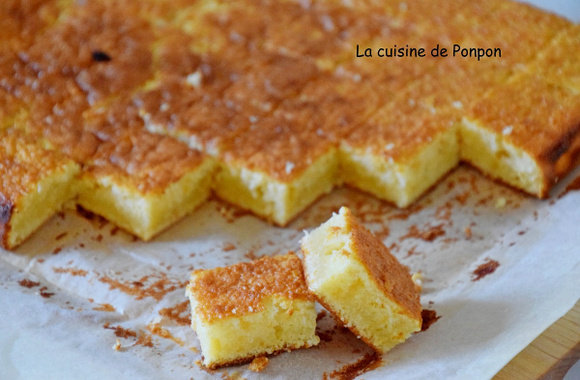 1Dans un saladier, mélanger les oeufs entiers. Ajouter le lait concentré et mélanger. Ajouter le chocolat blanc fondu et mélanger. Ajouter la farine et mélanger. Verser la pâte dans un moule carré siliconé ou garni d'un papier sulfurisé.