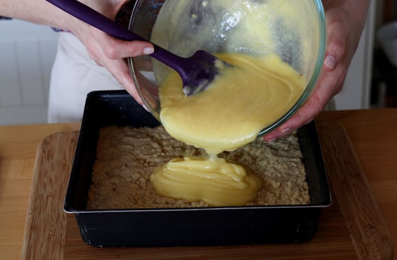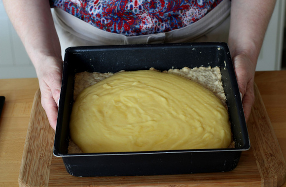 13Versez la crème sur la pâte cuite et refroidie.