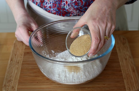 Dans un grand bol, mélangez la farine et le sucre.