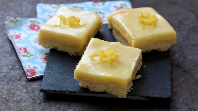 16Coupez en carrés et dégustez. Vous pouvez décorer les carrés avec des zestes de citron. Ces carrés se conservent 3 jours au frais.