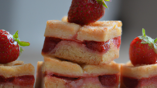 Parsemez la pâte de fruits. J'ai choisis les fraises parce qu'on est en pleine saison, mais vous pouvez très bien faire avec d'autres fruits : framboises, myrtilles, pommes, poires, bananes... Faites cuire pendant 30/40 min à 160 degrés et laissez bien refroidir avant de découper et de déguster au risque de vous brûler mais aussi que les 3 couches se cassent.
