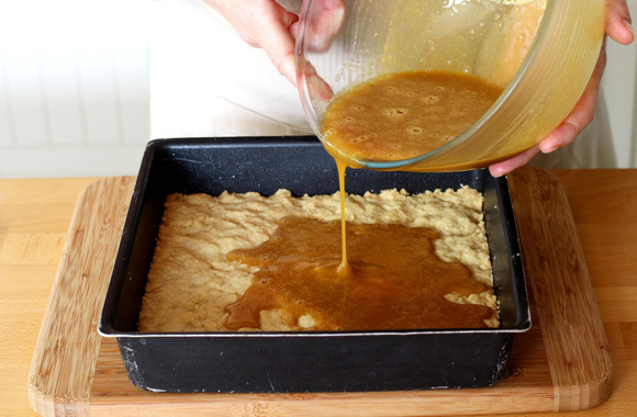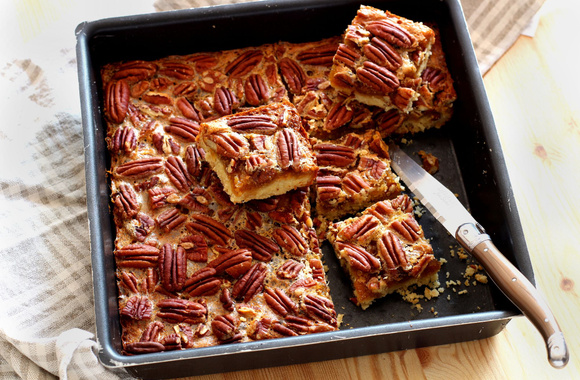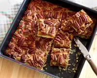 Spécialité américaine dérivée de la fameuse Pecan pie, nous l'avons adoptée avec grand plaisir. Ce dessert qui se coupe en carrés est parfait à emporter pour un petit creux.