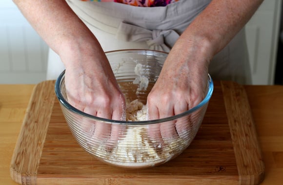 Incorporez le beurre du bout des doigts, jusqu'à ce que le mélange soit homogène.