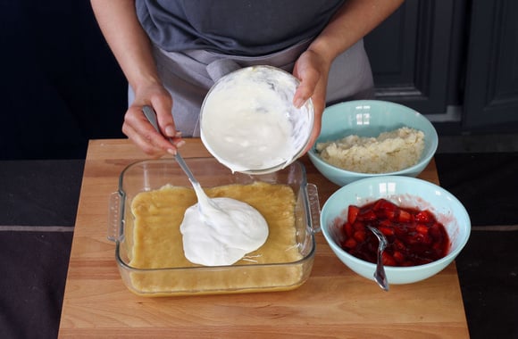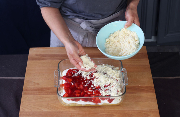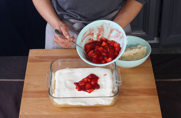 11Répartissez la confiture de fraises sur le fromage.