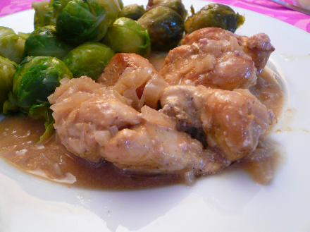 Poser les morceaux de dinde sur lequel vous aurez émietté le foie gras du congélateur dans un plat et servir la sauce à part, dans une saucière.