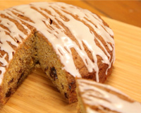 Pelez puis râpez les carottes. Dans un bol, fouettez les sucres et les œufs. Ajoutez le beurre fondu et mélangez. Ajoutez la farine, la levure, le bicarbonate, les épices et mélangez juste assez pour ne plus voir la farine. Ajoutez les carottes râpées, les noix et les raisins et mélangez juste assez pour les incorporer. Versez dans le moule et enfournez pour 35 à 40 minutes. Une lame de couteau insérée au centre du gâteau doit ressortir propre.