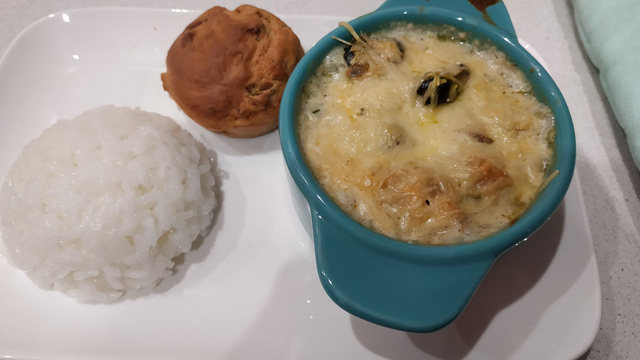 Servir avec du riz pour ma part je les servi avec du riz et des muffins aux légumes.