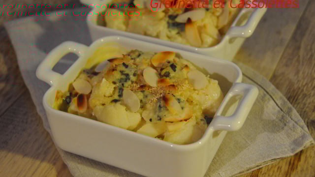 Ces cassolettes sont moelleuses grâce au chou-fleur à la crème, et à la Fourme. Les amandes apportent du croquant...