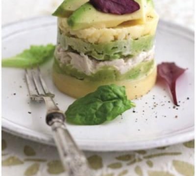 Ce plat traditionnel péruvien est un délicieux mélange de purée crémeuse, d'avocat Hass et de poulet à la mayonnaise.