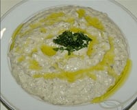 Variante : on prépare de la même façon le "moutabbal" ou "baba ghannouge" libanais : suivre la même recette mais, en mixant la pulpe, ajouter 1 yoghourt bulgare et 3 cuillères à soupe de tahiné (crème de sésame que l'on trouve dans les épiceries libanaises ou orientales), ajouter le citron et l'ail, une pincée de cumin (facultatif), dresser dans un ramequin, décorer de persil hâché et verser dessus un filet d'huile d'olive. Servir avec des grillades en guise de condiment ou de sauce (comme une mayonnaise). Cette sauce fait partie du mezzé libanais.