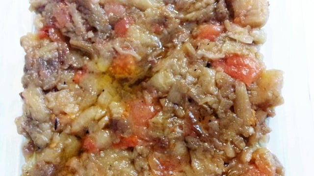 Une fois bien ramollies partout, retirer la peau des aubergines, couper la tête et gratter les tomates au couteau ( il restera sûrement quelques petits morceaux de peau brûlées, ce n'est rien c'est ce qu'il faut).