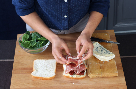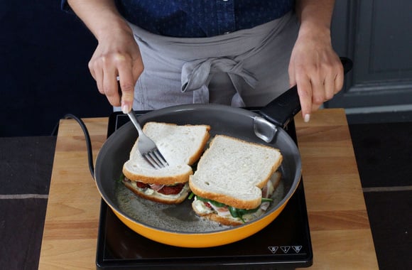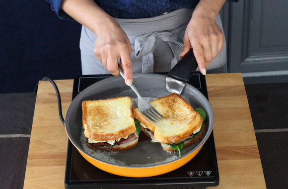 Recouvrez avec le reste des tranches, tassez et préparez le deuxième croque-monsieur.