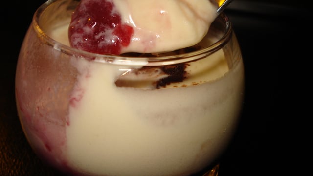 Répartir les cerises au sirop dans les verrines, recouvrir de la crème au yaourt et lisser la surface.