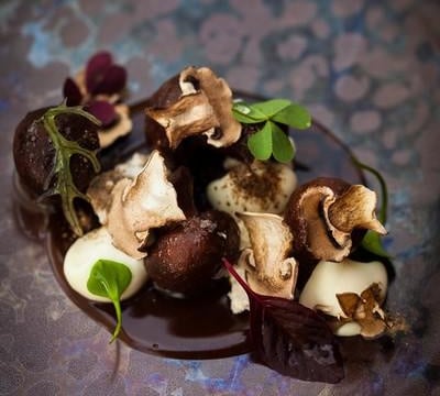 Faire fondre le beurre avec le café, puis ajouter les champignons. Imprégner sous vide 2 fois, puis cuire dans un Gastrovac à 50°C, 2 fois 15 minutes. Réserver au chaud.