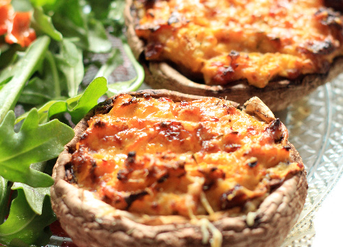Ajoutez en fin de cuisson le Philadelphia et 2 c à s de parmesan. Farcissez les champignons, disposez un peu de parmesan râpé sur chaque champignon.