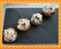 Dans un bol, mélanger le Surimi avec la Ricotta, le jus de citron, sel, poivre et garnir les têtes de champignons.