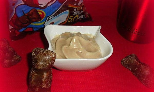 Faire fondre les 4 nounours Le Petit Ourson Guimauve® CÉMOI dans la crème fraîche liquide, délayer la poudre de chocolat nesquick.