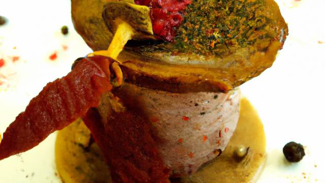 Piquer à l'aide de Brochette japonaise une tranche de magret séché et piquer une boule de foie gras.