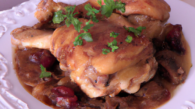 Chapon basse température au vin rouge.
