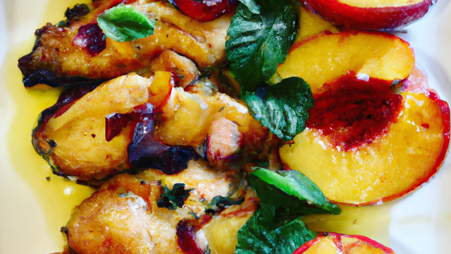 Ajouter ensuite l'oignon et les pêches coupées en morceaux et les faire revenir.