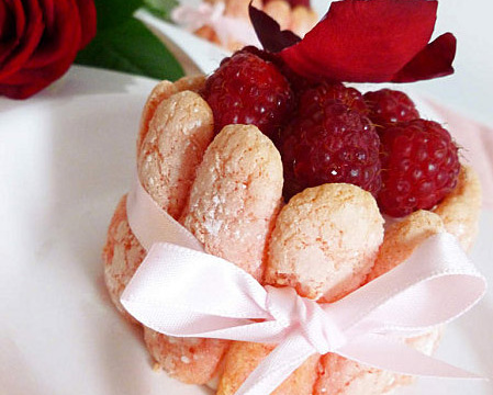 Version très girly de la célèbre charlotte, alliant la délicatesse de la rose à l'acidité de la framboise.