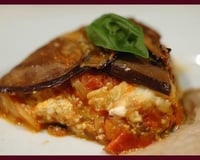 Enfournez pour 45 minutes environ. Il ne doit plus y avoir d'eau de végétation apparente dans le caquelon ce qui indique que les aubergines sont cuites. La charlotte doit être bien caramélisée.