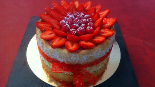 Délicieuse charlotte légère et onctueuse à base de fraises gariguette et framboise fraiches.