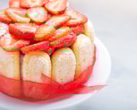 Tapisser le fond et les bords d'un moule à côtes avec les biscuits passés rapidement dans le sirop de coquelicots ou de fraises.