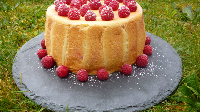 Au moment de servir, décorez la charlotte avec des framboises et du sucre glace.