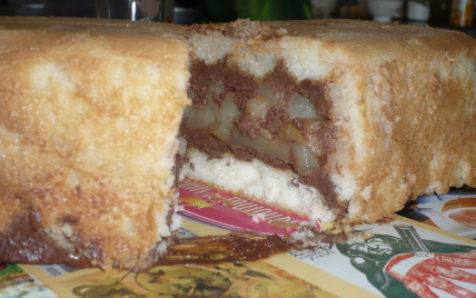 Coupez les demis poire au sirop en petits dés.Préparez la mousse au chocolat :