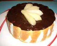 - Mettre vos feuilles de gélatine dans de l'eau froide.Peler vos poires, puis les couper en deux.Dans une casserole, mettre les poires, le sucre, de l'eau et un jus de citron.Faire cuire à feu doux pendant 10-15 minutes.Miser les poires et méanger avec la gélatine fondue. Réserver au réfrigérateur.Chauffer le sucre (100 à 150 grammes) avec de l'eau (25 cl). Lorsque le sucre est bien fondu, ajouter votre alcool.Fouetter la crème pour en faire une Chantilly, que vous incoporerez avec le mélange poire-gélatine.Beurrer un moule à charlotte et tapisser le fond avec des biscuits imbibés de sirop. Recouvrir du mélange, puis mettre une autre couche de biscuits, etc.Laisser reposer quelques heures au réfrigérateur. Servir sur un plat en saupoudrant de chocolat en poudre.Vous pouvez également décorer avec des amandes effilées.