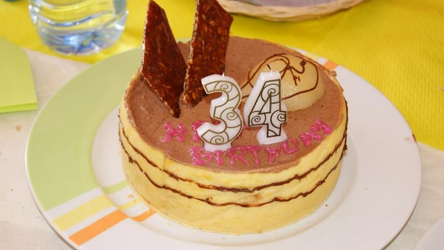Une bonne génoise avec mousse chocolat morceau de poires caramélisées et ses éclats de nougatine.