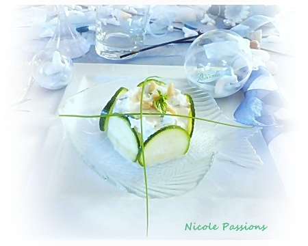 Au moment de servir coupez les rondelles de courgettes en deux et placez les sur les contours des timbales.