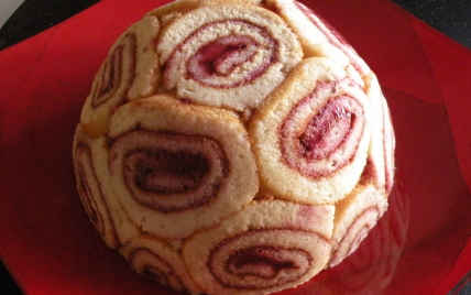 Une fois cuit, mettez la confiture sur le biscuit et roulez le. Recouvrez le de film étirable et réservez au frais.