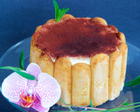 Trempez légèrement les biscuits, pas côté sucre. Commencez à monter votre charlotte. Biscuits côté sucre vers l'extérieur. Tapissez aussi le fond du moule à charlotte.Ajoutez une couche de crème au mascarpone, une couche de biscuits, jusqu'en haut du moule. Couvez avec une assiette ou couvercle et réservez au frais au moins 4 heures.