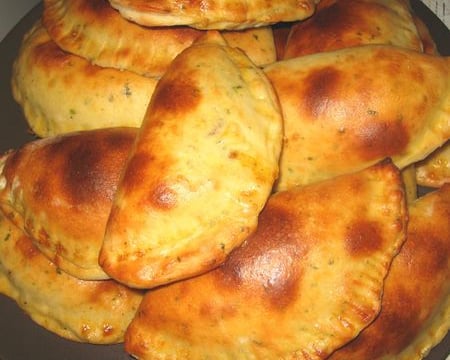 Étaler une petite boule de pâte mettre un peu de farce du fromage râpée fermer soit a la main a la fourchette ou si vous avez comme moi l'appareille a chausson.
