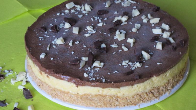 Cette recette au chocolat blanc et noir vous plaira sans aucun doute. Le côté beurré des biscuits ajoutés une touche croustillante.