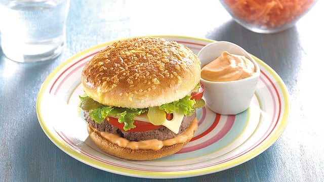 Vous pouvez acheter de la viande hachée, la parfumer avec des épices, avant de former des steaks. C'est encore meilleur. Vous pouvez aussi mélanger de la Mayonnaise de Dijon® Amora et du Ketchup Amora pour une sauce originale et gourmande.