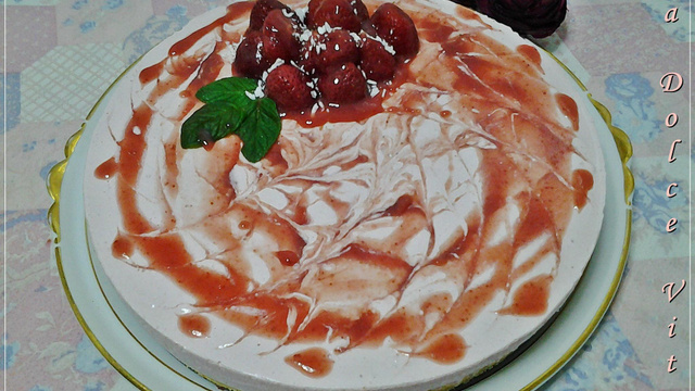 Je vous propose un délicieux dessert, c'est le cheesecake sans cuisson, je l'ai parfumé à la fraise, un vrai délice.